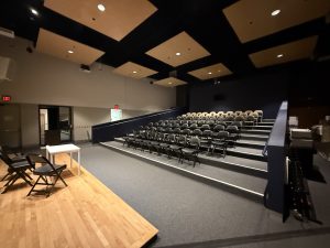 - Seating for up to 90 people on vaulted stairs, with accessible seating in the first row (10 seats.)